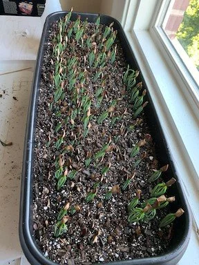 Planting what I came to call “bare root babies” (BRB) is vastly easier in my Pacolet soils than planting even a 6” container seedling, since that task requires a dibble stick looking more at home on a Viking ship than in the longleaf woods. In contrast, the hole for a BRB can be made with a spare chainsaw tool or screwdriver. I began experimenting with sowing the seeds for BRBs in various types of containers and found that cups, plastic pots, and flats all work well.