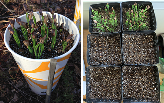 Although the ease of planting many dozens or even hundreds of seeds in flats at a single time proved attractive, smaller containers like 20-ounce drink cups or deep rooting plastic pots have a few advantages over larger flats. The smaller containers are easier to transport and handle in the field and serve to isolate disaster if dropped or left in a hot vehicle too long. Also, planting in smaller containers allows for the staggering of germination dates, making it more likely that the available number of BRBs ready for planting will match up with the number of people who can be talked into planting them (which has most often been one!).
